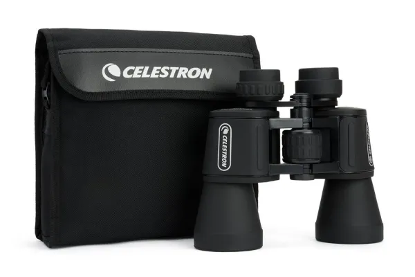 High quality binoculars at an affordable, economical price, multi-coated optics increase light transmission resulting in brighter and sharper images with high contrast levels, stylish rubber covered aluminum body protects from rough handling, ergonomic thumb indents and finger ridges for extra non-slip comfort and ease of use, water resistant, soft carrying case, binocular straps.Celestron UPCLOSE G2 10X50. Magnification: 10x, Objective diameter: 5 cm, Prism type: BK-7. Width: 160 mm, Depth: 81 mm, Height: 185 mm