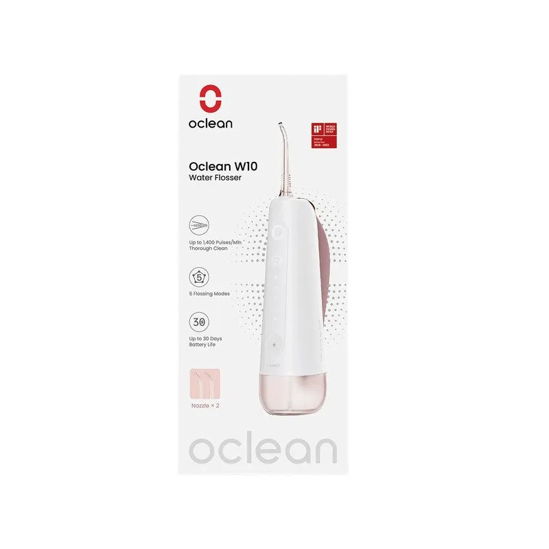 Brand- Oclean. Model- W10. Colour- White, Pink. Material- Plastic. For- For adults. Power supply- Battery. Storage battery type- Li-ion. Charging time- 300 min. Number of operating modes- 5. Rotational-reverse movements per minute- 1400. Stand included- Yes. Water resistance- Yes. Timer- No. Mandatory warranty- 24 mo.