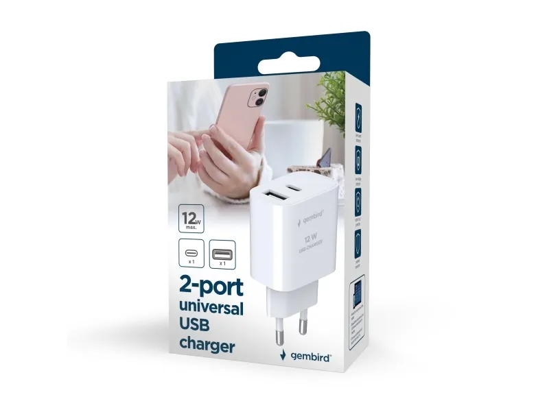 This Gembird USB charger is the ideal power solution for your cellular phones and tablets. It's designed to ensure your devices receive efficient and safe charging, thanks to its built-in overload and short circuit protection. With the capability to support both USB-C and USB-A connectors, it offers versatile charging options for a wide range of devices. The charger is compliant with numerous standards, including RoHS and ISO 9002, reflecting its quality and reliability. Whether at home or on-the-go, this power adapter is perfect for keeping your devices powered up and ready to use.