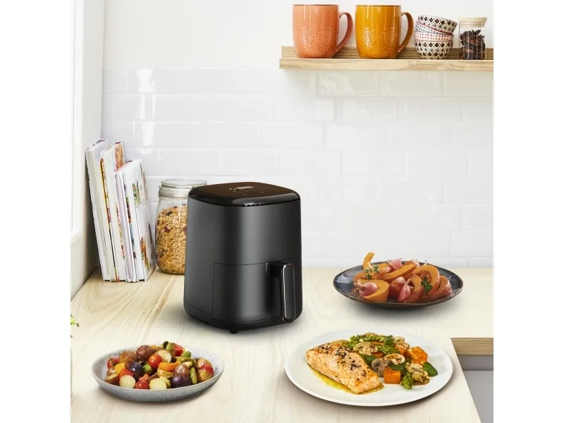 The Tefal Easy Fry Compact EY145810 is designed to simplify the cooking process without sacrificing flavor. This hot air fryer features a sizable 3-liter capacity, making it suitable for preparing meals for up to 4 people. With its variable temperature control ranging from 70°C to 200°C, users can easily customize their cooking experience for different foods, whether it be crispy french fries or perfectly roasted vegetables.