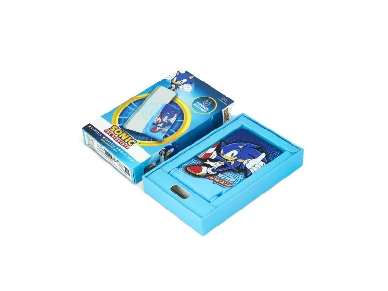 OTL Technologiesin langaton Sonic the Hedgehog -virtapankki tarjoaa tehokkaan ja kätevän latausratkaisun matkapuhelimellesi. Tämä vankalla 5000 mAh:n litiumpolymeeriakulla varustettu tehopankki tuottaa jopa 15 W:n tehon, mikä takaa, että laitteesi pysyy ladattuna myös matkalla. Sisäänrakennettu jalusta lisää toiminnallisuutta, joten käyttäjät voivat nostaa laitteensa pystyyn videoita katsellessaan tai videopuheluihin osallistuessaan. Sonic the Hedgehog -virtapankki on suunniteltu magneettisella langattomalla alustalla, ja se liitetään yhteensopiviin laitteisiin, jolloin lataaminen on helppoa ilman kaapeleita. Kevyen ja kannettavan rakenteensa ansiosta se sopii erinomaisesti matkoille, jotta laitteesi ovat aina valmiina, kun niitä tarvitaan. Latauskaapelin mukanaolo sekä USB-C- että magneettiliitäntätyypeillä parantaa käytettävyyttä ja tarjoaa monipuolisia vaihtoehtoja eri laitteiden virransaantiin.