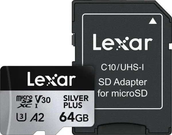 Rigorously Tested All Lexar products undergo extensive testing in the Lexar Quality Labs, facilities with thousands of different cameras and digital devices to ensure performance, quality, compatibility, and reliability.Lexar Professional SILVER PLUS. Capacity: 64 GB, Flash card type: MicroSDXC, Flash memory class: Class 3, Internal memory type: UHS-I, Read speed: 205 MB/s, Write speed: 100 MB/s, UHS Speed Class: Class 3 (U3), Video Speed Class: V30. Protection features: Temperature proof, Magnet proof, Shock resistant, X-ray proof, Impact resistant, Product colour: Black, Silver