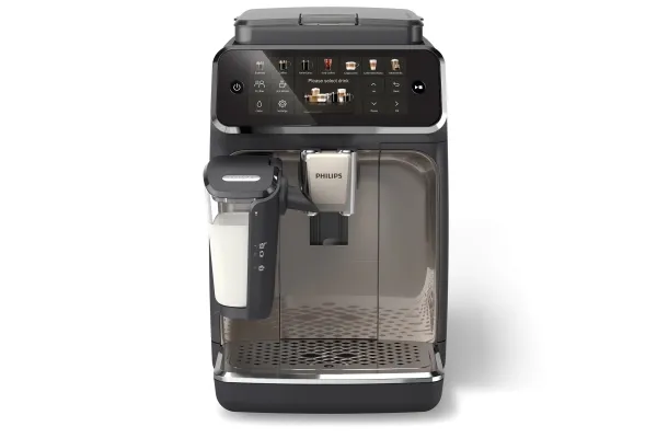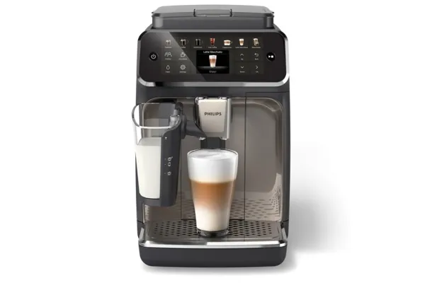 Brand- Philips. Model- EP4449/70. Depth- 43.3 cm. Width- 24.6 cm. Height- 37.1 cm. Weight- 8 kg. Colour- Black, Grey. Material housing- Plastic, Metal. Power- 1500 W. Maximum working pressure- 15 Bar. Type of coffee- Ground coffee, Coffee beans. Types of beverages- Café au lait, Black coffee, Warmed milk, Ice Coffe, , Latte Macchiato, Ristretto, 2 x Espresso, 2 x Black coffee, Hot water, Caffè Crema, Espresso, Caffè latte, Cappuccino. Water capacity- 1.8 l. Coffee bean capacity- 275 g. Capacity for milk- Yes. Coffee strength adjustment- Yes. Water hardness adjustment- No. Preparing several cups at once- No. Steam nozzle- No. Cup warming- No. Integrated coffee grinder- Yes. Adjustable coffee coarseness- Yes. Preserving coffee recipes- Yes. With manometer- No. Automatic washing- Yes. Automatic descaling- No. Screen- Yes. Type of coffee machine- Automatic. Preparation of cold drinks- Yes. Mandatory warranty- 24 mo.