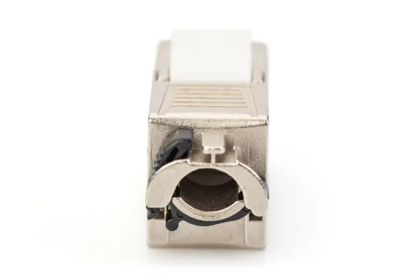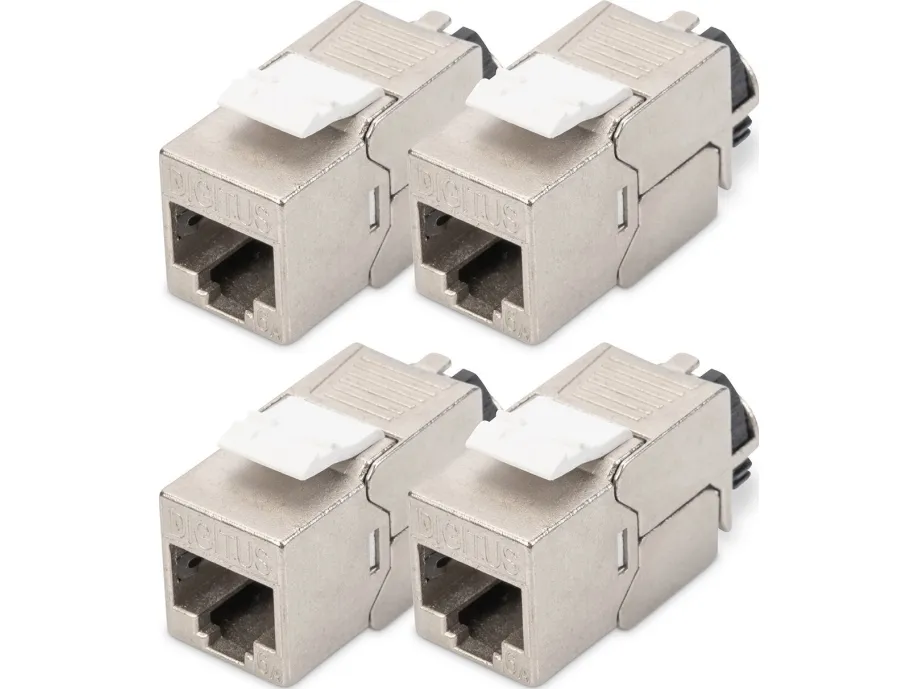 The DIGITUS DN-93617-4 modular insert is designed to offer connectivity solutions with a wide array of features for efficient networking. It supports Power over Ethernet (PoE) and complies with standards including IEEE 802.3af, 802.3at, and 802.3bt, ensuring compatibility with various setups. Constructed with a shielded design and phosphor bronze contacts, this keystone module is suitable for installations using 22 - 26 AWG stranded wire, providing reliable connections with minimal interference. Operating effectively in temperatures ranging from -20°C to 70°C, this modular insert is built for durability and optimal performance in various environmental conditions. The toolless feature enhances ease of installation, allowing for quick setup without specialized tools. Its RJ-45 connector ensures secure and stable connections, making it an essential component for both professional and personal networking needs.