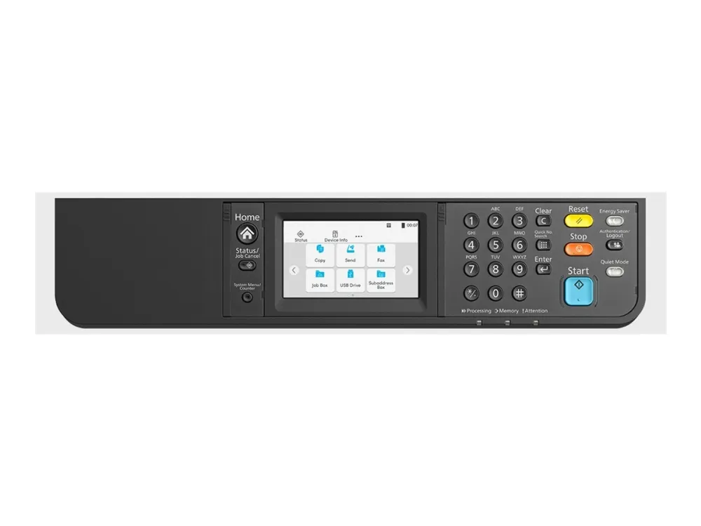 The Kyocera ECOSYS MA4000wifx is designed for efficiency and high performance in a compact format, perfect for any office environment. With a maximum printing speed of 40 pages per minute and a robust monthly duty cycle of 80,000 pages, this multifunction printer excels at meeting demanding productivity needs. Its advanced features, including automatic duplexing and a maximum resolution of 1200 x 1200 DPI, ensure quality prints while minimizing paper waste. This model supports a variety of connectivity options such as USB 2.0, Gigabit LAN, and Wi-Fi, making it easy to integrate into existing networks. The enhanced security protocols, including TLS 1.3 encryption and Kerberos, provide peace of mind for sensitive documents. Mobile printing capabilities, including AirPrint and the Kyocera Mobile Print app, allow for seamless printing from smartphones and tablets, while the intuitive 4.3-inch touch screen simplifies operation. It's a versatile solution for copying, printing, faxing, and scanning, aimed at streamlining workflow in various office settings.