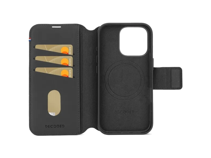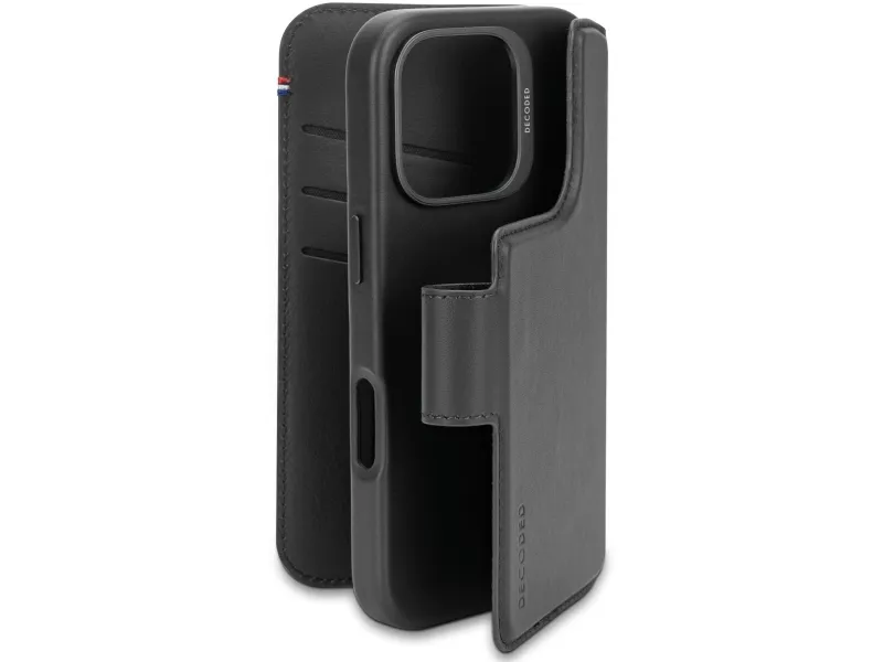 Black Leather Detachable Wallet Case for iPhone 16 Introducing the Black Leather iPhone 16 Leather Detachable Wallet Case from DECODED, a versatile and stylish accessory designed for your iPhone 16. This innovative case serves as both a protective cover and a functional wallet, offering a seamless blend of luxury and practicality.