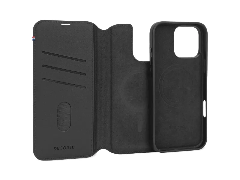 Perfect Alignment. Ensure seamless integration with precise iPhone and camera alignment, maintaining the sleek design and functionality even when the Wallet is attached.Decoded Leather Detachable Wallet Case. Case type: Wallet case, Brand compatibility: Apple, Compatibility: iPhone 16, Maximum screen size: 15.5 cm (6.1"), Surface coloration: Pattern, Product colour: Black, Number of card pockets: 3