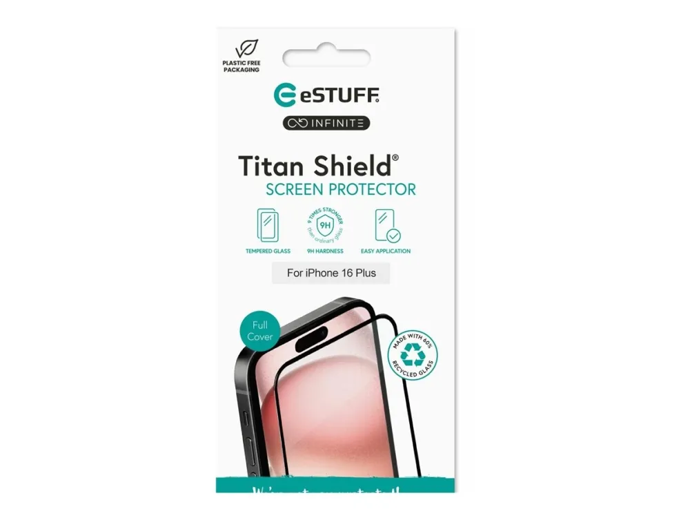 The eSTUFF Titan Shield Infinite offers essential protection for cellular phones with an emphasis on durability and sustainability. This tempered-glass screen protector is designed to withstand daily use, featuring robust scratch-resistant, shock-resistant, shatter-resistant, and crack-resistant construction. With a recycled content of 60%, it provides high-quality protection and contributes to environmental sustainability by using recycled pre-consumer glass. Each package includes a cleaning kit, ensuring that your device remains clear and undamaged, while the design allows for easy use with cases.