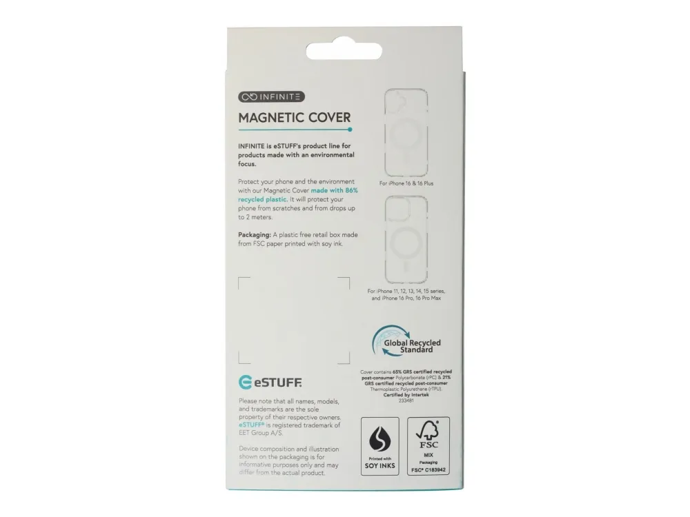 Discover the eSTUFF Infinite Oslo, a protective cover designed for the eco-conscious and tech-savvy user. Made entirely from recycled plastic, this cover not only contributes to a healthier planet but also provides your cell phone with protection against everyday hazards. Its hybrid construction of polycarbonate and thermoplastic polyurethane (TPU) ensures your device is safeguarded against bumps, drops, and scratches. The Oslo model features raised edges for additional screen and camera protection, while maintaining full access to ports and buttons. Moreover, it supports MagSafe and Qi wireless charging, allowing you to charge your device without the hassle of removing the cover. Embrace both sustainability and protection with the eSTUFF Infinite Oslo cover.