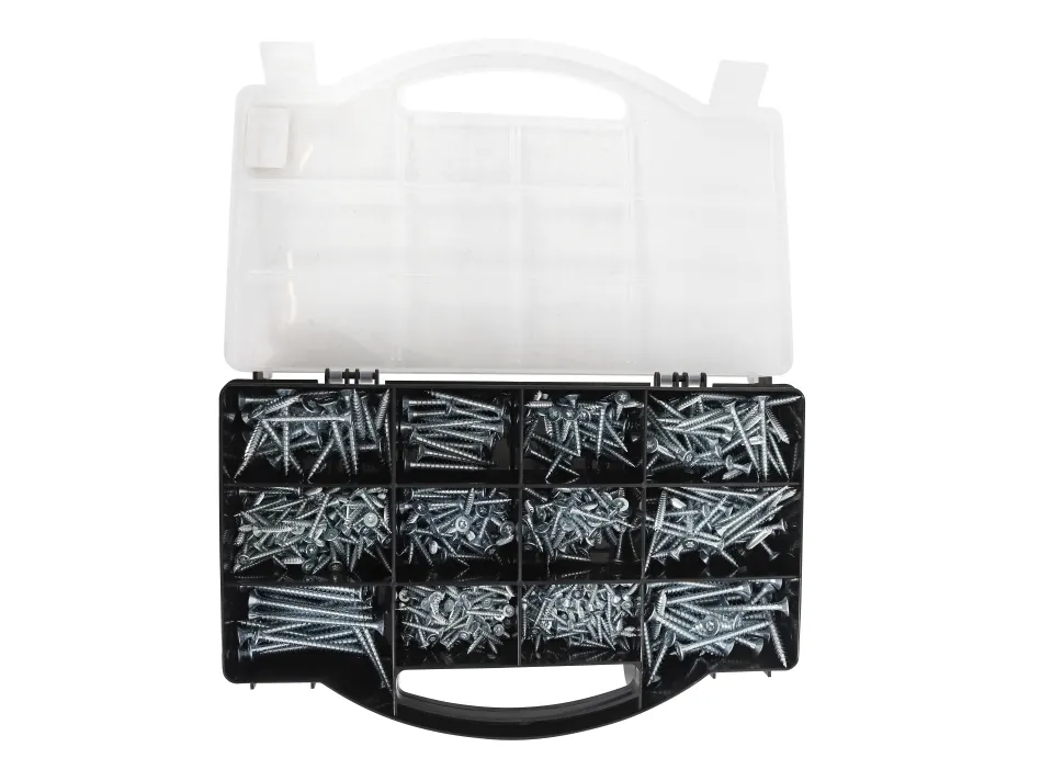 HOME It Work® -valikoimalaatikko, joka sisältää 670 kappaletta 10 yleisintä puuruuvia.