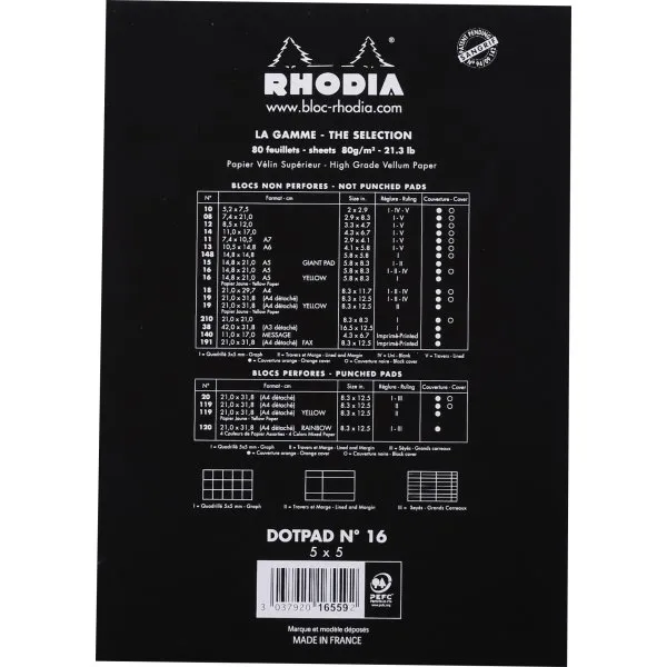 Rhodia Dot Pad A5 - 80 microperforated sheets - 80gram ( not punched - cardboard backed). Rhodia nr. 16559C
