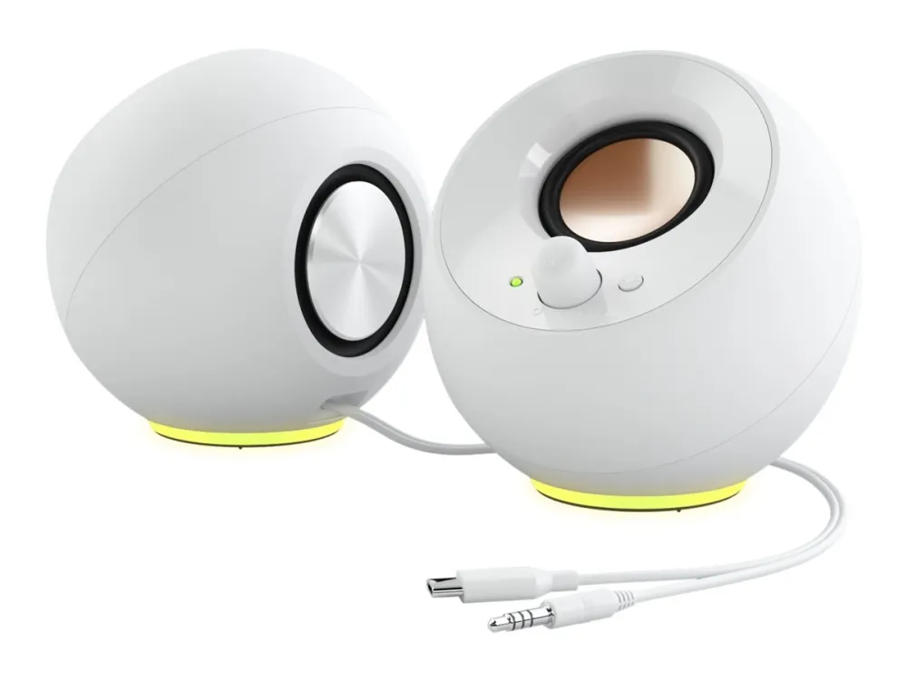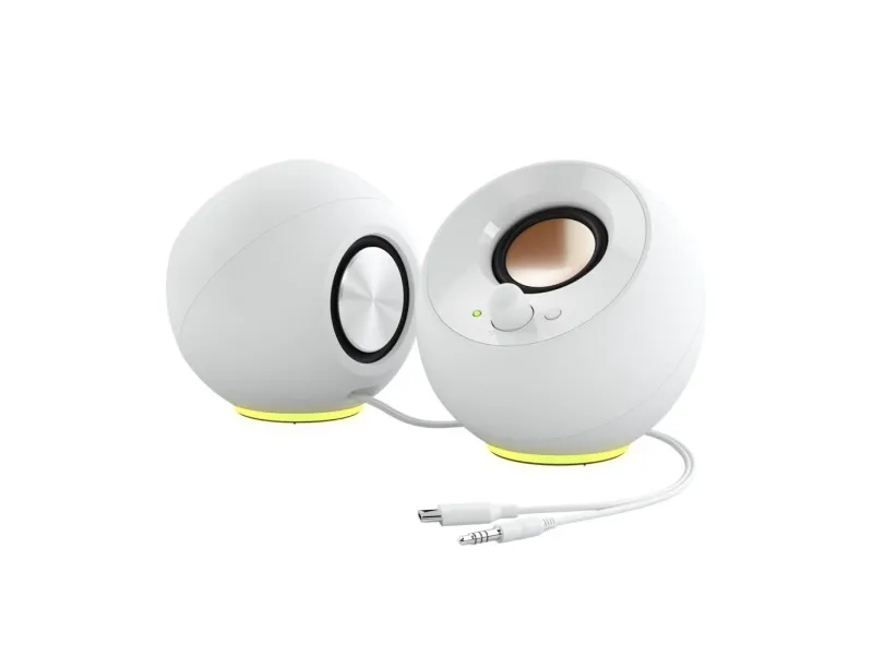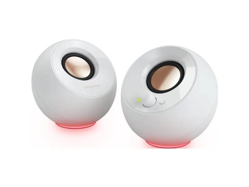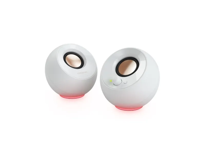 The Creative Pebble SE speakers bring an immersive audio experience designed for PC use. Equipped with full-range drivers and a passive radiator design, these speakers deliver a rich stereo sound with a frequency response of 80 - 20,000 Hz. The integrated power supply ensures reliable performance, while the simple volume control adds convenience to your listening experience. Additionally, these speakers feature vibrant RGB lighting for an engaging aesthetic that complements any setup. Connectivity options include a USB-C port for power and an AUX input for easy connection to various devices. With a compact design, the Creative Pebble SE seamlessly fits into any workspace, offering both functionality and style. Whether for gaming, music, or movies, these speakers enhance audio enjoyment.