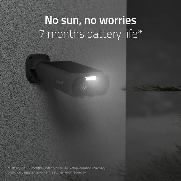 Hombli Solar Cam 2K tarvitsee tuskin koskaan latausta tehokkaan aurinkopaneelin ja yli seitsemän kuukautta kestävän akun ansiosta*. Aurinkopaneeli pitää akun tasaisena vain 30 minuutin päivittäisellä auringonpaisteella*. Sinun ei siis juuri koskaan tarvitse tehdä mitään kameran ylläpitämiseksi.