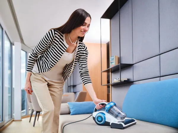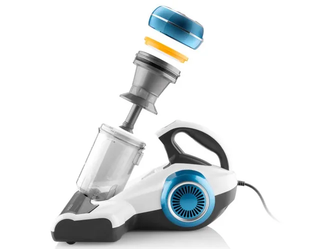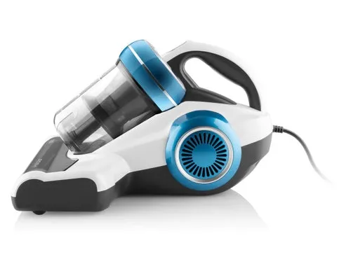 The ETA Roxy 5215 90000 is a handheld vacuum cleaner designed for efficient and effective cleaning. With a dust capacity of 0.5 liters and a bagless collection system, it provides hassle-free operation. This vacuum features advanced sensor technology and a built-in UV lamp, ensuring a thorough cleaning experience, especially suited for pet hair removal. The washable filter enhances maintenance. Thanks to its cyclonic technology, this vacuum maintains strong suction power, making quick work of dirt and debris in your home. Equipped with a 5 m cord and a powerful 350 W motor, the ETA Roxy 5215 90000 is perfect for daily cleaning tasks. Its sound pressure level of 78 dB(A) ensures quiet operation, while the included cleaning accessories, such as the turbo brush and dust filter, enhance functionality. The power on indicator light and easy-to-use push button controls further streamline the user experience, making this vacuum cleaner a reliable choice for maintaining a clean living space.