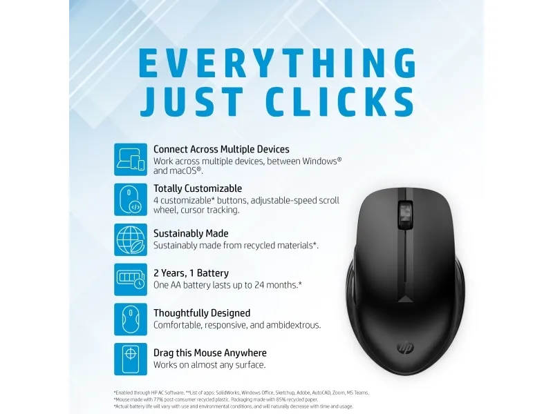 HP 435 - hiiri - monilaitteinen - 2.4 GHz, Bluetooth 5.2