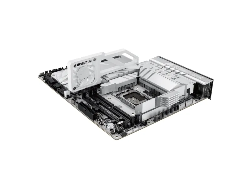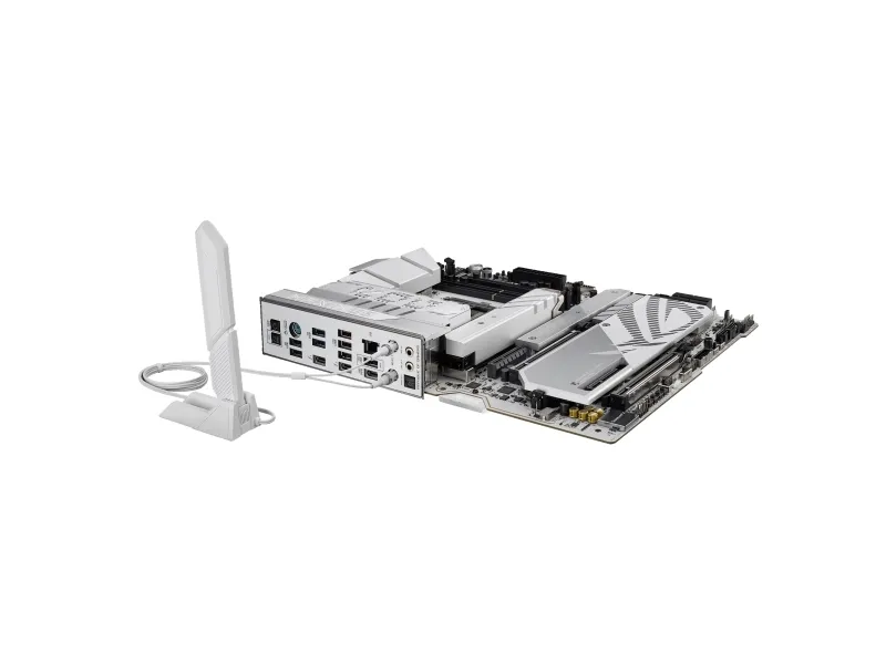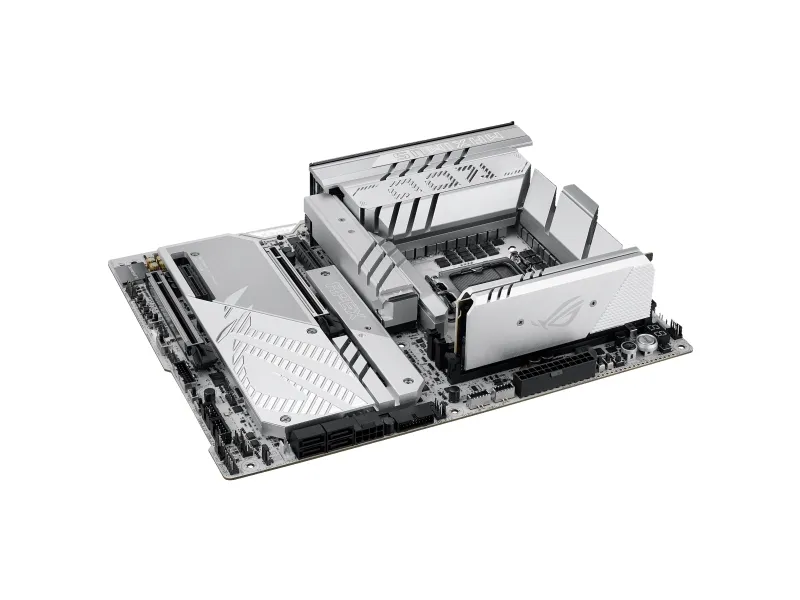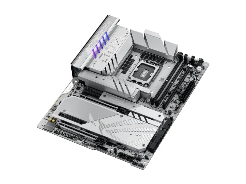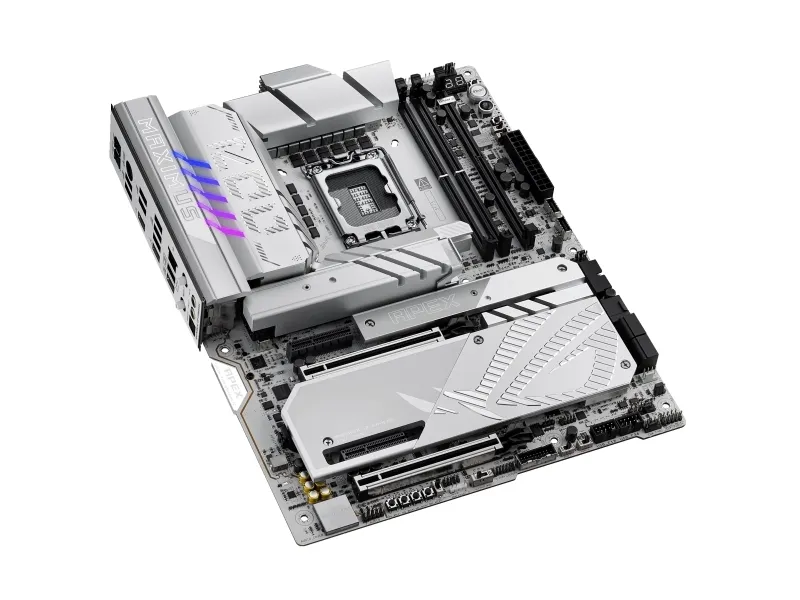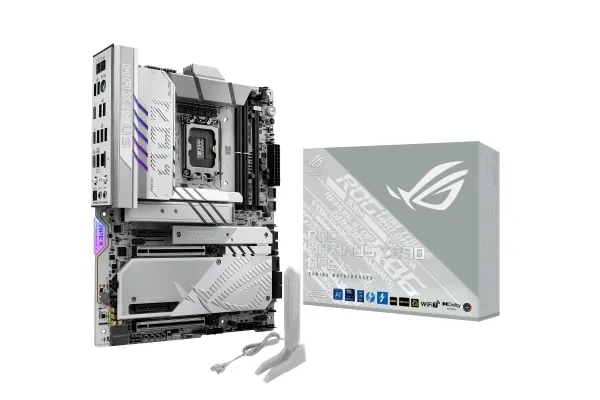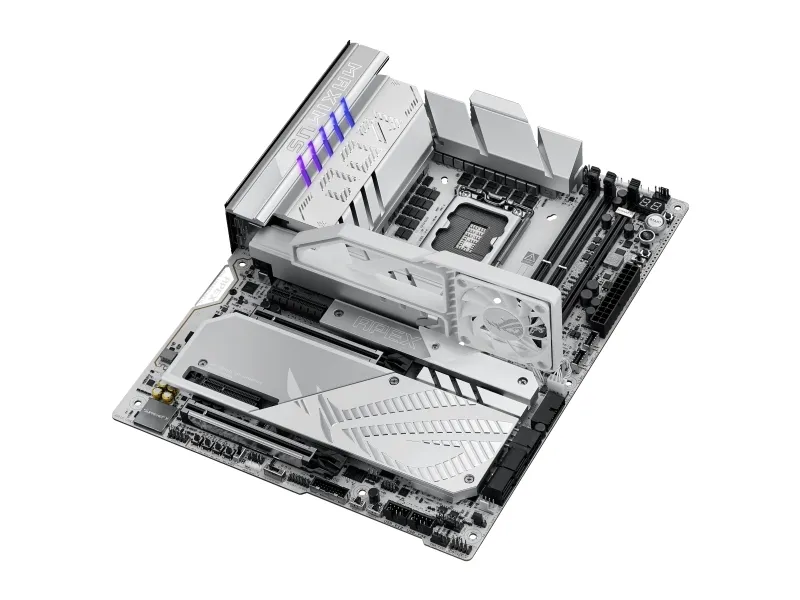 ROG Maximus Z890 APEX The ROG Maximus Z890 Apex fully supports Intel® Core™ Ultra processors (Series 2). Precision-engineered for supreme overclocking, it carries the legacy of the series forward into a new generation. With exceptional power delivery and a two-slot DDR5 memory layout, overclockers can meet and exceed their ambitions for record-breaking CPU and memory performance. For those who favor lighter colors for the aesthetics of their build, the ROG Maximus Z890 Apex features a cobble-gray surface, polished metallic accents, sleek contours and a predominantly silver palette.ASUS ROG MAXIMUS Z890 APEX. Processor manufacturer: Intel, Processor socket: LGA 1851 (Socket V1), Compatible processor series: Intel Core Ultra (Series 2). Supported memory types: DDR5-SDRAM, Maximum internal memory: 96 GB, Memory slots type: DIMM. Supported storage drive interfaces: M.2, SATA III, Supported storage drive types: HDD & SSD, RAID levels: 0, 1, 5, 10. Ethernet interface type: 5 Gigabit Ethernet, Top Wi-Fi standard: Wi-Fi 7 (802.11be), Wi-Fi standards: Wi-Fi 7 (802.11be). Component for: PC, Motherboard form factor: ATX, Motherboard chipset family: Intel
