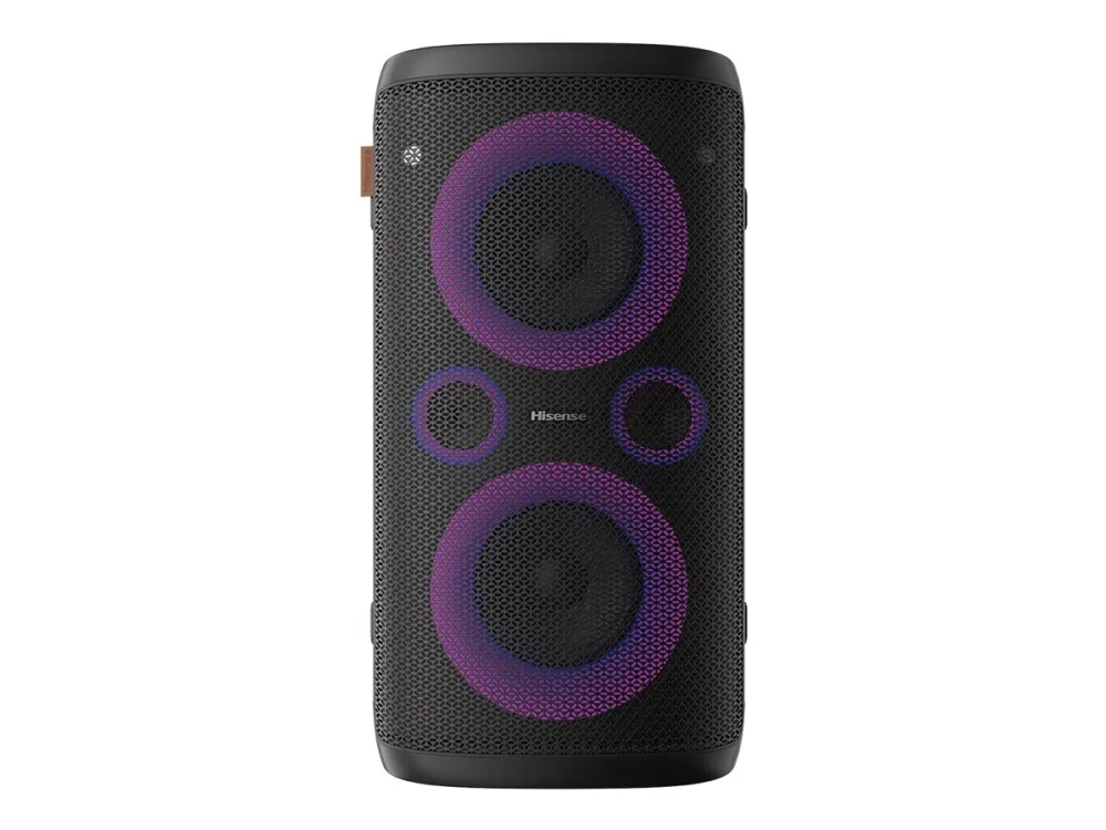 The Hisense Party Rocker One Plus is designed to elevate any gathering with its robust audio system and exciting light features. This party speaker supports multiple audio formats including WAV, WMA, and MP3, ensuring compatibility with various media sources. Equipped with a USB-host, it allows users to plug in their devices effortlessly. The multicolor LED lights add a vibrant touch to the atmosphere, while two included microphones enable karaoke fun for everyone. With a rechargeable battery capacity of 2500 mAh, the speaker offers extended playtime, making it perfect for outdoor parties and events. Durability is a key aspect of the Hisense Party Rocker One Plus, as it is splash-resistant with an IPX4 rating. The True Wireless Stereo (TWS) feature allows pairing with additional speakers for a fuller sound experience. With Bluetooth 5.0 connectivity, the speaker connects smoothly to devices for wireless streaming, while multiple input options, including guitar audio input, ensure versatility for all types of performances and setups. Whether it’s a casual hangout or a lively party, this speaker delivers impressive sound quality with peak power of 300 watts and extensive controls for mixing audio.