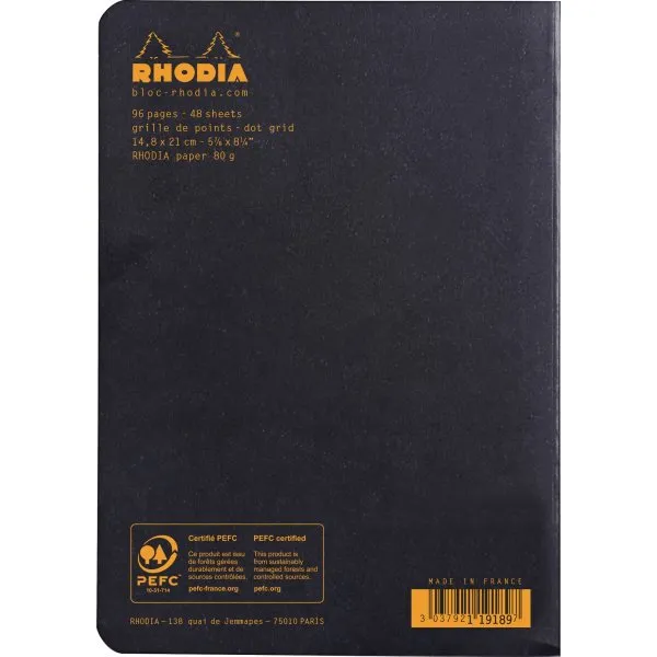 Rhodia Muistikirja A5 viivoitettu - musta kansi - 80g 48 sivua (Rhodia nro 119189C)