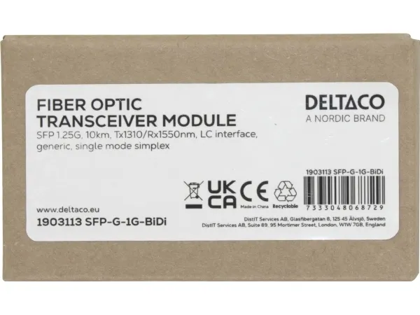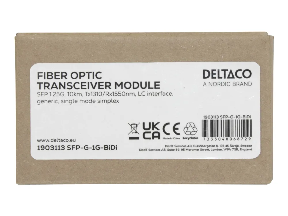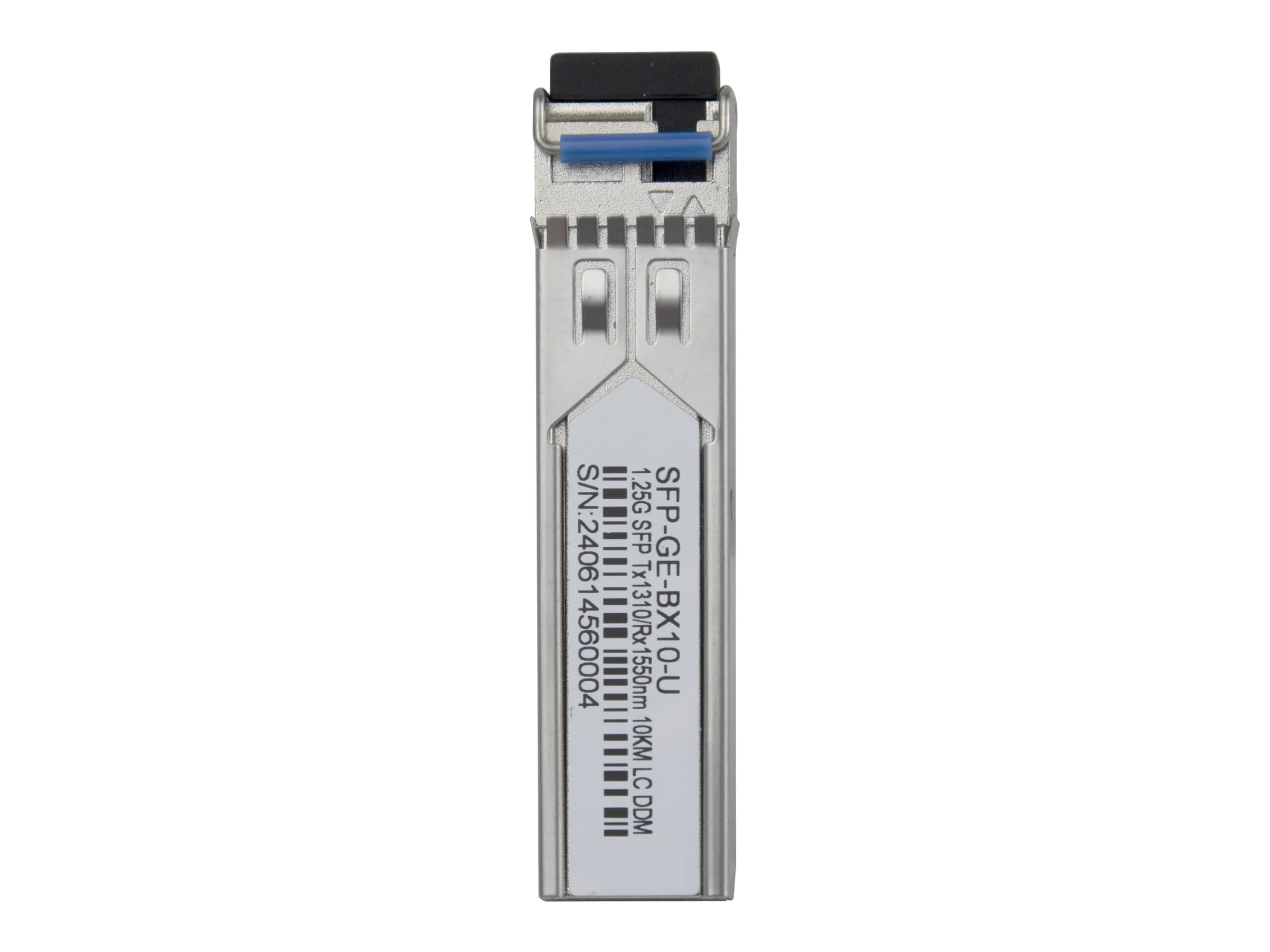 Generic compatible 1000BASE-BX-U SFP transceiver provides up to 10km of 1000Base-LX throughput over single-mode fiber (SMF) using 1310nm-TX/1550nm-RX wavelengths via LC simplex connectors.