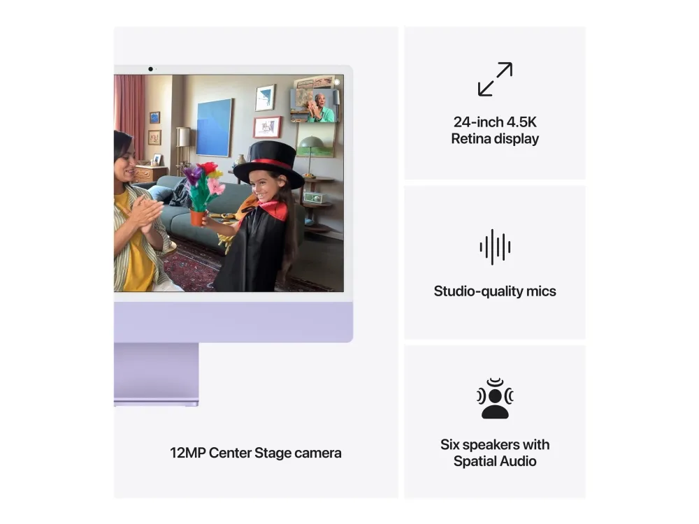 IMac. Täydellinen all-in-one-työpöytä. Rakennettu Apple Intelligencea varten [1]. M4-sirun avulla selailu ja monitoimityöskentely eri sovellusten välillä tuntuu nopeammalta. Upea 24-tuumainen 4,5K Retina-näyttö [2] ikonisessa muotoilussa sekä edistyksellinen kamera, mikrofonit ja kaiuttimet. iMac on loistava työssä ja vapaa-ajalla.