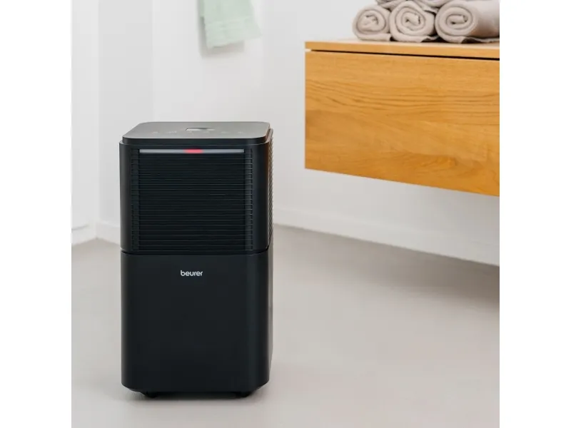 ADVARSEL• Dette apparat er kun beregnet til privat brug og derhjemme, ikke til erhvervsmæssig brug.• Dette apparat kan anvendes af børn fra 8 år og derover samt af personer med nedsat fysisk, sensorisk eller mental funktionsevne eller mangel på erfaring og viden, hvis de er under opsyn eller er blevet undervisti sikker brug af apparatet og forstår de dermed forbundne farer.• Børn må ikke lege med apparatet.• Rengørings- og brugervedligeholdelse må ikke udføres af børn, medmindre de er under opsyn.• Træk stikket ud af stikkontakten, når apparatet ikke er i brug, før transport og/eller rengøring.• Opstil apparatet på en stabil og vandret overflade på en sådan måde,at der er 50 cm fri plads på alle sider af apparatet.• Rengør kun apparatet, som angivet. Der må under ingen omstændigheder trænge væske ned i ventilatorenheden.• Brug ikke rengøringsmidler, der indeholder opløsningsmidler.• Hvis strømkablet er beskadiget, skal den udskiftes af producenten,dennes serviceagent eller en lignende kvalificeret person for at undgåfare.. TILSIGTET BRUGLuftaffugteren er udelukkende beregnet til affugtning af luften indendørs i lukkede rum, ikke til vådrum og uventilerede kældre.Luftaffugteren er kun beregnet til privat brug. Brug ikke apparateti umiddelbar nærhed af badekar og brusere.ADVARSELHvis du lider af svære luftvejs- eller lungeproblemer, skal du rådfø-re dig med din læge, før du anvender luftaffugteren. Apparatet erkun beregnet til det formål, som er beskrevet i denne betjeningsvejledning. Producenten kan ikke holdes ansvarlig for skader, deropstår som følge af ukorrekt eller uforsigtig brug.4. ADVARSLER OG SIKKERHEDSANVISNINGERADVARSELKvælningsfare! Hold børn på afstand af emballagematerialet.Elektrisk stødADVARSELSom ethvert andet elektrisk apparat, skal denne luftaffugter anvendes forsigtigt og med omtanke for at undgå fare for elektriskstød.• Anvend derfor kun apparatet med den netspænding og netfrekvens, der er anført på apparatet (typeskiltet sidder vedsiden af apparatets el-ledning).• Apparatet må aldrig anvendes, hvis apparatet eller dettestilbehør er synligt beskadiget eller har været tabt. Tag ikkeet defekt apparat i brug igen. Kontakt i stedet Beurers kundeservice.• Apparatet må kun sluttes til en kontakt med fejlstrømsrelæ(risiko for elektrisk stød).• Træk stikket ud i tilfælde af funktionsfejl, før rengøring og nårapparatet ikke er i brugSluk straks for apparatet i tilfælde af defekter eller driftsfejl, ogtræk apparatets stik ud af stikkontakten. Træk aldrig i el-ledningen eller apparatet for at trække stikket ud af kontakten.Hold, eller bær aldrig apparatet i elledningen. Hold afstandmellem ledningerne og varme overflader.• Sluk altid for apparatet, før stikket trækkes ud.• Træk aldrig stikket ud med fugtige eller våde hænder.• Hold apparatet væk fra ild, brændbare eller eksplosive objekter.• Sørg for, at luftaffugterens åbninger og netkablet ikke kommer i berøring med vand, damp eller andre væsker.• Anvend ikke apparatet i nærheden af brændbare eller eksplosive gasblandinger.• Forsøg aldrig at tage et apparat op, hvis det er faldet ned ivand. Træk straks stikket ud af stikkontakten.• Udsæt ikke apparatet for stød, og sørg for, at det ikke kanfalde på gulvet.• Dette apparat skal installeres i henhold til de gældende lokaleinstallationsforskrifter.• Undgå at vælte eller vende apparatet.• Brug ikke forlængerledninger eller adapterstik.• Undlad at klatre op på eller sætte dig på apparatet.• Stik ikke fingre eller andre genstande ind i luftudgangen 2 .• Rør ikke ved apparatets luftindtag 7 eller aluminiumslameller.• Brug ikke apparatet, hvis det er blevet tabt eller beskadiget,eller hvis der er tegn på funktionsfejl.• Rengør ikke apparatet med kemikalier.• Hold apparatet væk fra ild, brændbare eller eksplosive genstande.• Opbevar apparatet på en sådan måde, at mekaniske skaderundgås.• Apparatet må ikke skilles ad eller brændes, heller ikke efterbrug.• Vær opmærksom på, at kølemidlet ikke lugter.• Rørene skal beskyttes mod fysisk beskadigelse og må ikkeinstalleres i et uventileret rum, der er mindre end 4 m².• Apparatet skal opbevares i et godt ventileret rum, der svarertil det rumareal, der er angivet for drift.• Nedsænk aldrig apparatet i vand eller andre væsker. Der måikke komme vand på apparatet eller ind i apparatet.• Apparatet må ikke forbindes med andre husholdningsapparater via en multistikkontakt.• Brug ikke forlængerledninger.• Opstil ikke apparatet på våde eller oversvømmede overflader.• Hæng ikke gardiner eller vådt tøj foran luftudgangen 2 , dadet vil overbelaste apparatet.• Hæng ikke vådt tøj over apparatet, da der ellers kan dryppevand ind i apparatet.ReparationADVARSEL• Reparationer af elapparater må kun udføres af fagfolk. Reparationer, der ikke er udført korrekt, kan medføre betydeligfare for brugeren. Henvend dig til vores kundeservice eller enautoriseret forhandler, hvis der er brug for reparation.• Apparatet må ikke skilles ad eller åbnes med værktøj.BrandfareADVARSELHvis apparatet anvendes til andre formål end dem, det er beregnettil, eller hvis den medfølgende betjeningsvejledning ikke følges, erder under visse omstændigheder risiko for brand!• Apparatet må derfor aldrig tildækkes af f.eks. et tæppe elleren pude, når det er i brug.• Apparatet må aldrig anvendes i nærheden af benzin eller andre letantændelige stoffer.• Stil aldrig apparatet på steder, hvor det kan blive udsat forvarmekilder.• Stil aldrig apparatet i nærheden af varmekilder som f.eks.radiatorer, varmeflader, ovne eller andre produkter, der genererer varme.• Stil aldrig apparatet på steder, hvor der kan sprøjte olie ellervand.• Stil aldrig apparatet på et sted, hvor det udsættes for direktesollys.• Stil aldrig apparatet på et sted, hvor det udsættes for