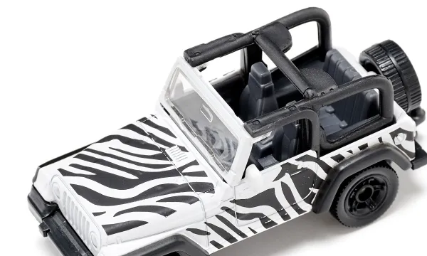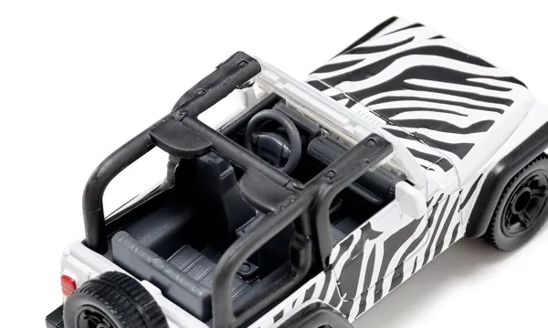 The detailed toy model of a Jeep Wrangler Safari is perfect for both play and collection. Its robust and stable design, thanks to the metal body, ensures durability. This model makes an ideal gift for children on birthdays or other special occasions, and it also serves as a charming decoration for adult birthdays or wedding gifts. Its compact size makes it easy to take along, providing long-lasting fun with countless combination options within the SIKU play world. The SIKU 1546 Jeep Wrangler Safari is made from metal and plastic, measuring 7.5 x 3 x 5 cm, and weighs 0.0310 kg. It comes in a stylish white and black color scheme and is part of the SIKU SUPER series.