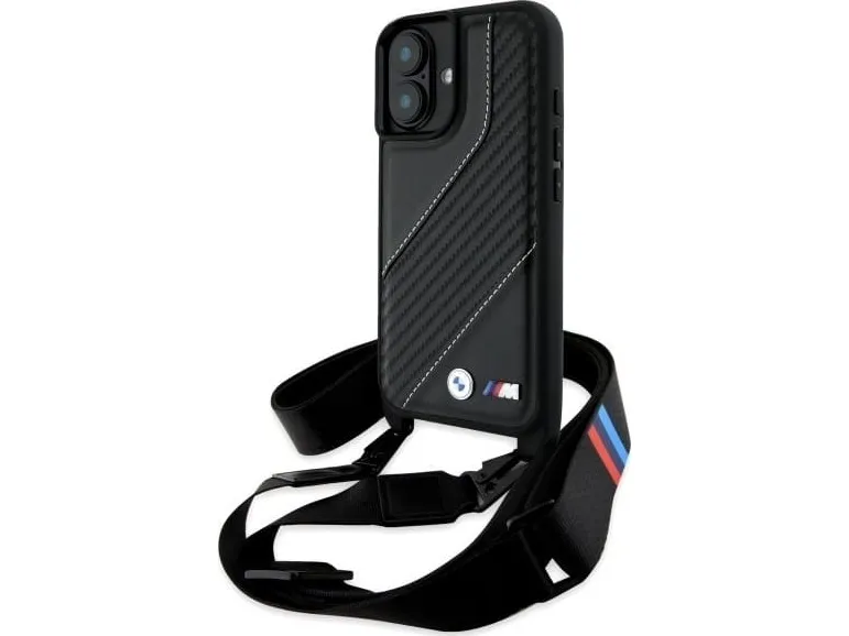 BMW BMHCP16S23PSCCK Apple iPhone 16 6.1" dėklas telefonui juodos spalvos M Edition Carbon Stripe & Strap