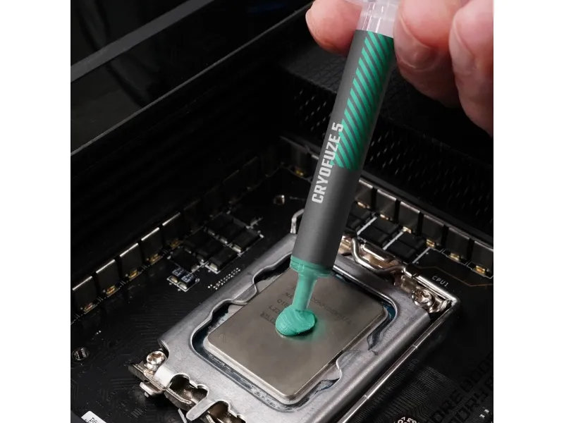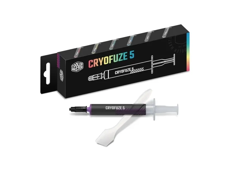 Cooler Master CryoFuze 5 thermal paste provides performance for optimal heat transfer in electronic devices. With operational temperature tolerance from -50°C to 240°C, this thermal paste ensures reliability in diverse environments. The unique composition features corrosion protection and oxidation resistance, enhancing durability while maintaining effective thermal conductivity. Each package includes a spatula for easy application and a grease cleaner for efficient preparation, ensuring a seamless experience for maintenance or upgrades.