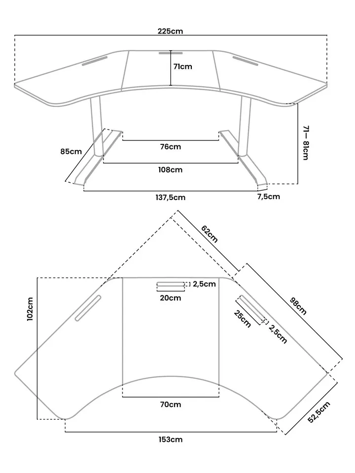 The Arozzi Arena Angelo redefines gaming desks with its innovative features and robust design. Designed specifically for gamers, it offers an adjustable height feature, allowing users to find their optimal comfort level for long gaming sessions. The desk comes equipped with a comprehensive cable management system, including 3 cutouts and a cable management basket, to keep your gaming area tidy and organized.