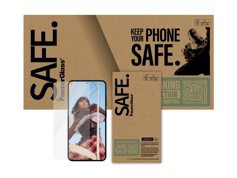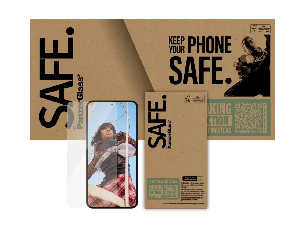 SAFE. is for real. SAFE. is for you. SAFE. is for dance floor mishaps, selfies gone wrong and your everyday fumbling, dropping and screen cracking. This SAFE. by PanzerGlass ? screen protector made of 60% recycled material acts as a discrete airbag, protecting your phone by absorbing impacts and providing high-level scratch resistance without compromising the functionality and look of your device. It even has a smudge-free coating that reduces traces of fingerprints and grease and ensures 100% compatibility with your screen's ultrasonic fingerprint reader.Can you feel it? Love is in the air. Love for phones and the planet. It's the new circle of phone life. When you keep your beloved phone SAFE., you can one day pass it on to another phone lover who will love it just as much as you do. Choose SAFE. and give your phone a second, third or fourth life! This is one way of working toward a more sustainable future! Another is to use less and less and LESS packaging: For this screen protector, we've reduced the paper packaging by 33%*. This product comes in a recyclable FSC-certified box.Everybody deserves to be SAFE. Without hassle, red tape, or unnecessary complexity. This screen protector comes with an EasyAligner that makes installation a piece of cake (seriously!) and to make it even easier, we've included step-by-step instructions as well as a QR code for quick access to our online how-to video. And remember: You just need to install the screen protection once! Then you'll never again fear the sight of your phone tumbling to the ground screen first. This may not happen, but if it does, you'll regret not having clicked "add to cart".No screen protection is worth poor screen performance! That's why this screen protector comes in Ultra-Wide Fit, meaning it covers the front surface of your phone, providing a complete and crystal-clear view of your screen. It even leaves a little room around the edges to give you the freedom to upgrade your protection with a SAFE. by PanzerGlassTM case. And if you want 360-degree protection, combine the screen protector and case with a SAFE. by PanzerGlass camera lens protector.Keep your phone SAFE.*Measured by third-party lab by comparing the mass of the new paper packaging introduced in 2023 with the mass of the previous paper packaging introduced in 2022 (CPRTC, report No. ZSA20231301-0016).
