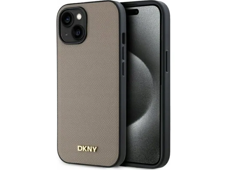 DKNY DKHMP15SPGHLME Apple iPhone 15 6.1" dėklas telefonui gelsvas Grained Metal Logo MagSafe