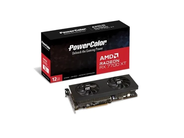 The PowerColor Radeon RX 7700 XT graphics card is designed to elevate gaming experiences with its AMD Radeon RX 7700 XT GPU. Featuring 12 GB of GDDR6 SDRAM and a bus width of 192-bit, this card provides stunning graphics and smooth performance across demanding titles. With a maximum resolution of 7680 x 4320, it supports up to four monitors, making it an option for immersive gaming setups and productivity tasks. Emphasizing efficiency, the card incorporates advanced cooling technologies such as Intelligent Fan Control and a dual fan design for optimized thermal management.