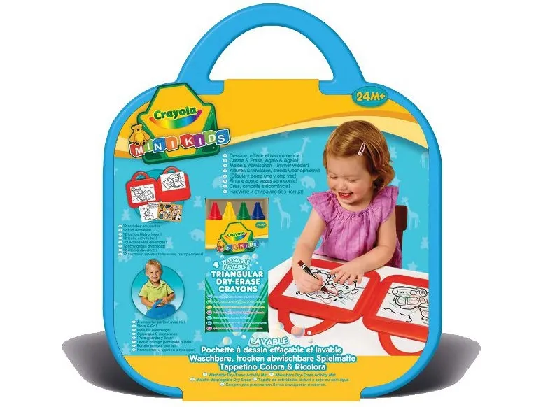 Crayola Väritä ja pyyhi -aktiviteettisetti tarjoaa loputtomasti hauskaa värityspuuhaa! Väritä kuvat, pyyhi pois ja aloita alusta. Kätevä salkku kulkee helposti mukana matkalla. Pakkaus sisältää 12 värityskuvaa, 4 väriliitua, liinan ja 3 tarra-arkkia. 1+
