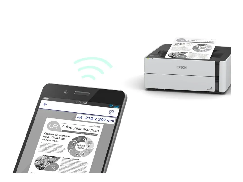 A4-kokoinen yksivärinen mustesuihkutulostin, jonka iso ekosäiliö riittää jopa 6000 arkin tulostamiseen yhdellä uudelleentäytöllä. Laitteen yksinkertaisen ja sulavalinjaisen muotoilun halkaisee vain ekosäiliön mukanaan tuoma rako. Mustetason voi tarkastaa tai säilön kannen avata ja sulkea intuitiivisesti. Pullon kärki ja täyttöaukko muotoiltiin ainutlaatuisella tavalla täyttövahinkojen estämiseksi. Riittää, kun asetat pullon paikalleen, jolloin tulostin täyttää sen automaattisesti musteella - miellyttävästi ja varmasti. Tämä edullinen laite tulostaa vaivatta erilaiset asiakirjat sekä vähentää odotusaikoja ja hävikkiä päivittäisessä työssä.