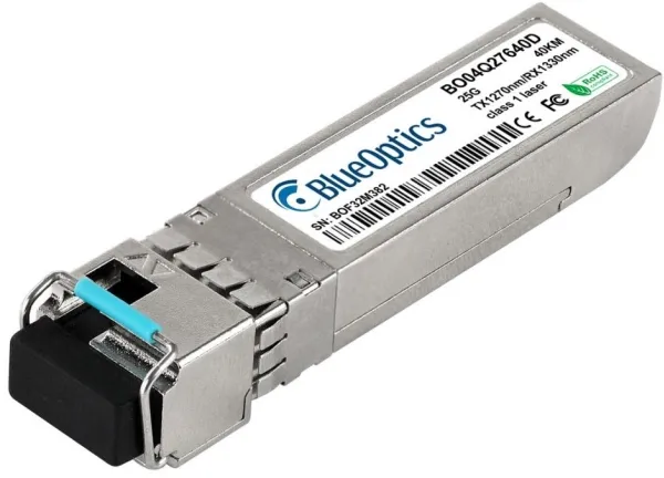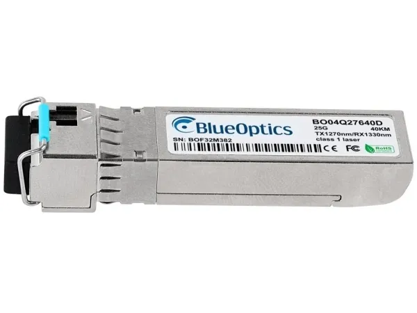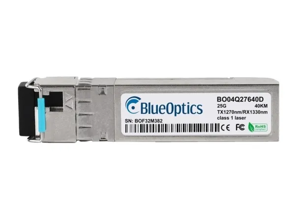Yhteensopiva Ubiquiti Networks SFP28-25G-BX-U-40KM BlueOptics BO04Q27640D SFP28 Bidi Transceiver, LC-Simplex, 25GBASE-BX-U, yksimuotokuitu, TX1270nm/RX1330nm, 40KM, DDM, 0°C/+70°C (SFP28-25G-BX-U-40KM-UQ-BO)