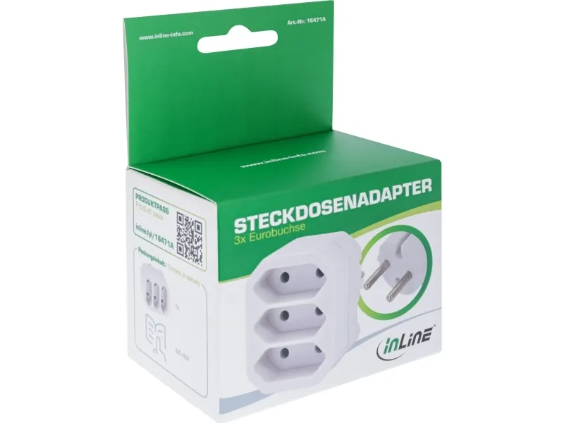 InLine 16471A, tyyppi F, tyyppi C (europistoke), suora, suora, suora, valkoinen, ripustusrasia