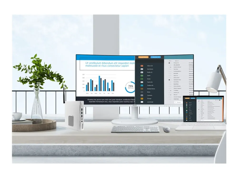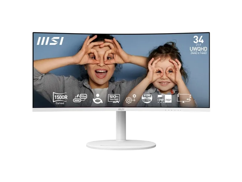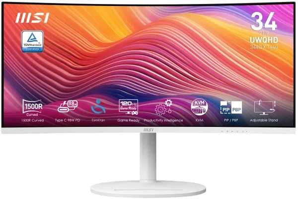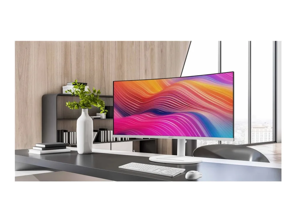 Master productivity with the Modern MD342CQPW professional monitor. With a curved 34" display, work without compromise with a screen that fits all of your apps and windows. The 120Hz refresh rate and MSI EyesErgo technology makes browsing smooth while preventing eye-strain from long work sessions, while MSI Eye-Q helps remind you to take a break to rest your eyes. Declutter your desk with an adjustable stand and integrated cable management solutions to maximize productivity and your workspace.