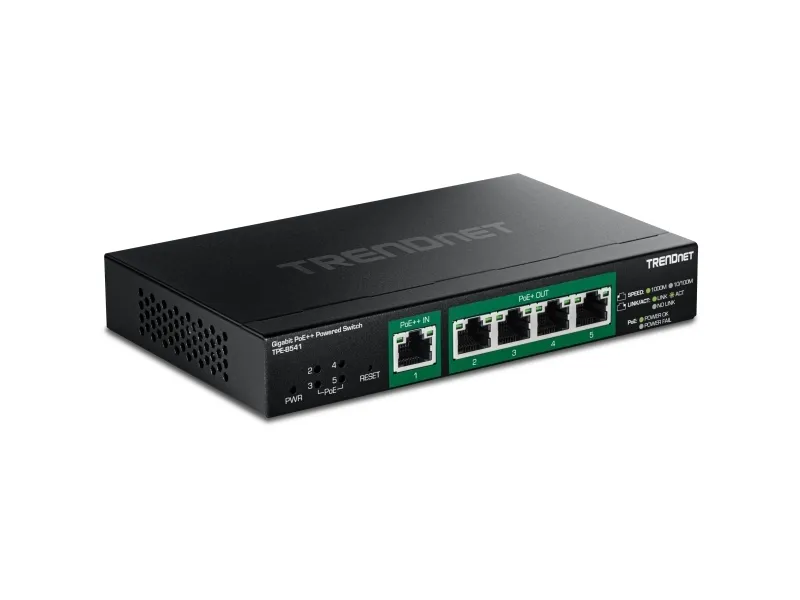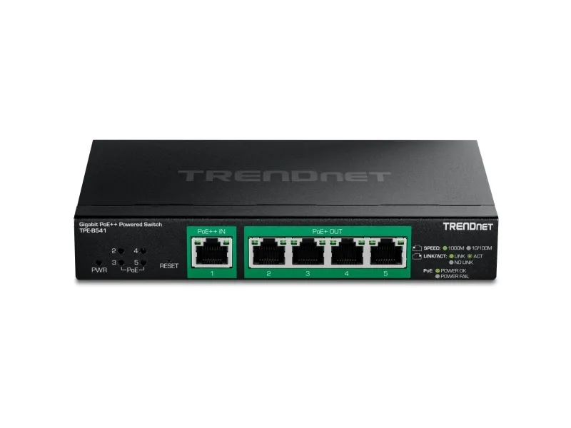 TRENDnet TPE-B541 - Versio v1.0R - kytkin - virtakytkin, jossa PoE läpivienti - älykäs - 5 x Gigabit Ethernet - seinään asennettava - PoE++ (60 W) - TAA-yhteensopiva - TAA-yhteensopiva