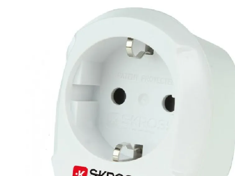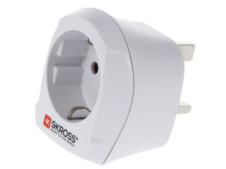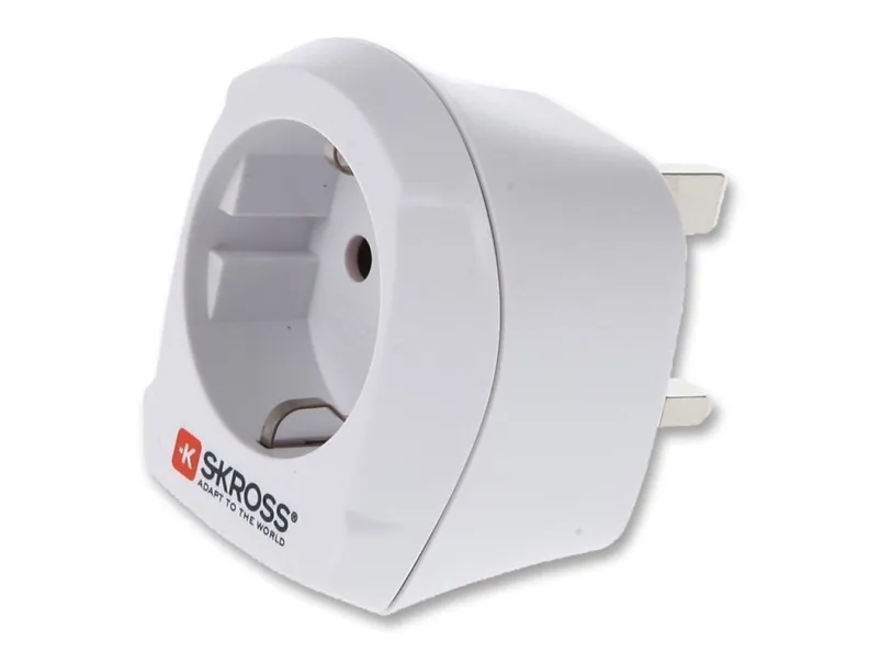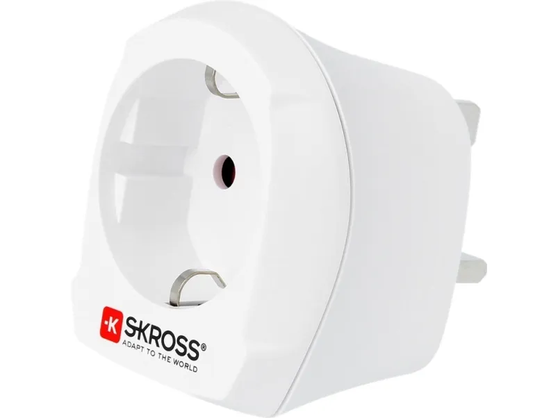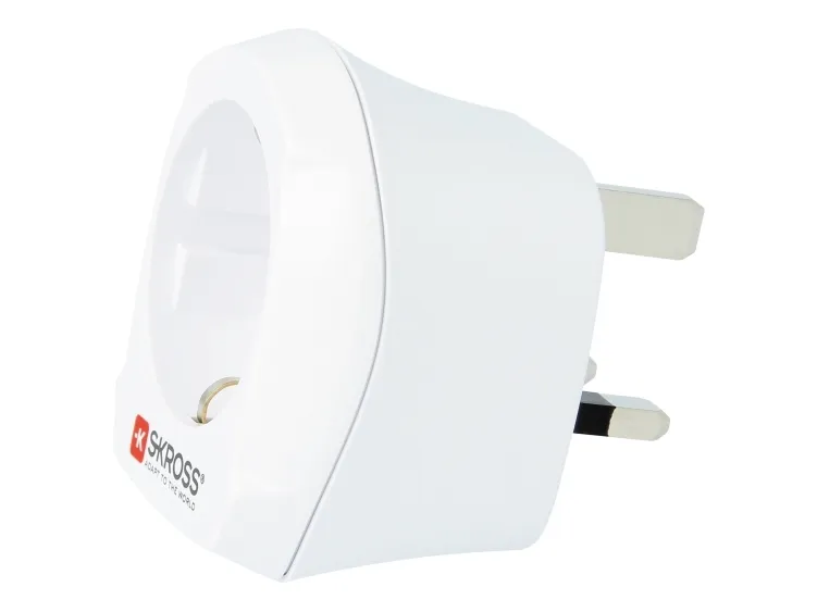 This travel adapter is also ideal for hotels or seminar organisers who want to offer their international guests the opportunity to connect the devices they have brought with them.Skross 1.500230-E. Plug connector type: Type D (UK), Socket connector type: Type C (Europlug), AC input voltage: 100 - 250 V. Width: 64 mm, Depth: 57 mm, Height: 64 mm. Package width: 120 mm, Package depth: 120 mm, Package height: 64 mm