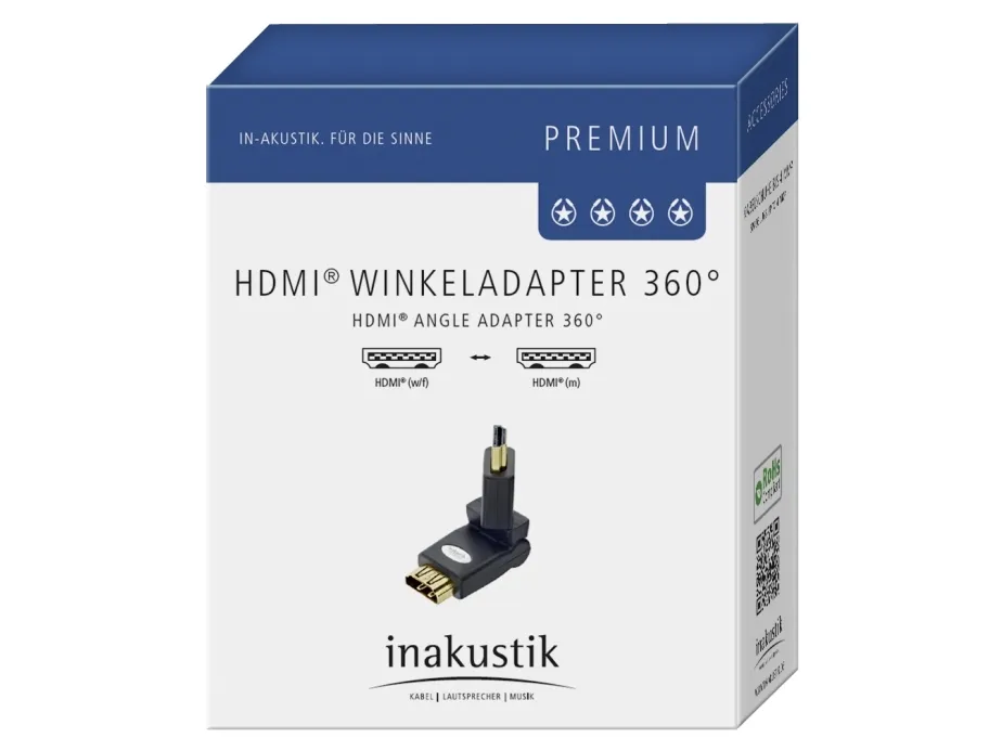 This premium HDMI adapter can be bent in any direction you wish. It is ideal for connecting an HDMI cable in narrow spaces, for example behind an LED-TV on the wall, or other components. With gold-plated contacts.