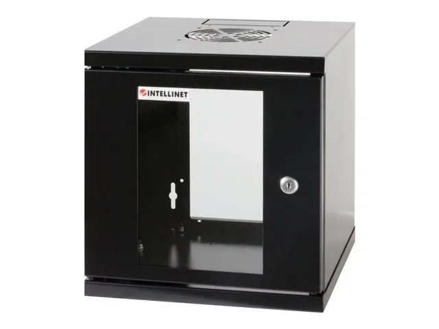The Intellinet Network Solutions wall mount cabinets offer you a flexible and comprehensive solution for your network installations. Our service starts with the shipping condition – get the completely assembled cabinet delivered or save space and money with the flat-pack version. In terms of housing, you can choose from among the extra-compact 10? cabinets and numerous 19? versions, with installation depths that range from 300 to 600 mm. Heights from 6 to 20 units in black (RAL9005) or (RAL7021) & grey (RAL7035)._x000D_\nWe offer you a solution for every need. _x000D_\n_x000D_\nVarious options include:_x000D_\nRemovable side panels (some lockable)._x000D_\nTempered/Toughened glass doors. _x000D_\nDouble Section, making cabling and component exchange simple.\n\n- Ideal for 19" rackmount applications\n- Maximum static load of 60 kg\n- Tempered-glass door can be opened more than 180°\n- Cable entry via rear or top panel\n- Cold-rolled, galvanized SPCC steel with up to 1.2 mm thickness\n- Reversible Front door\n- Lockable removable side panels\n- Ships assembled\n- Three-Year Warranty