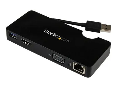 StarTech.com USB 3.0 to HDMI or VGA Adapter Dock - USB 3.0 Mini Docking Station w/ USB, GbE Ports - Portable Universal Laptop Travel Hub (USB3SMDOCKHV) - telakointiasema - USB - HDMI - 1GbE