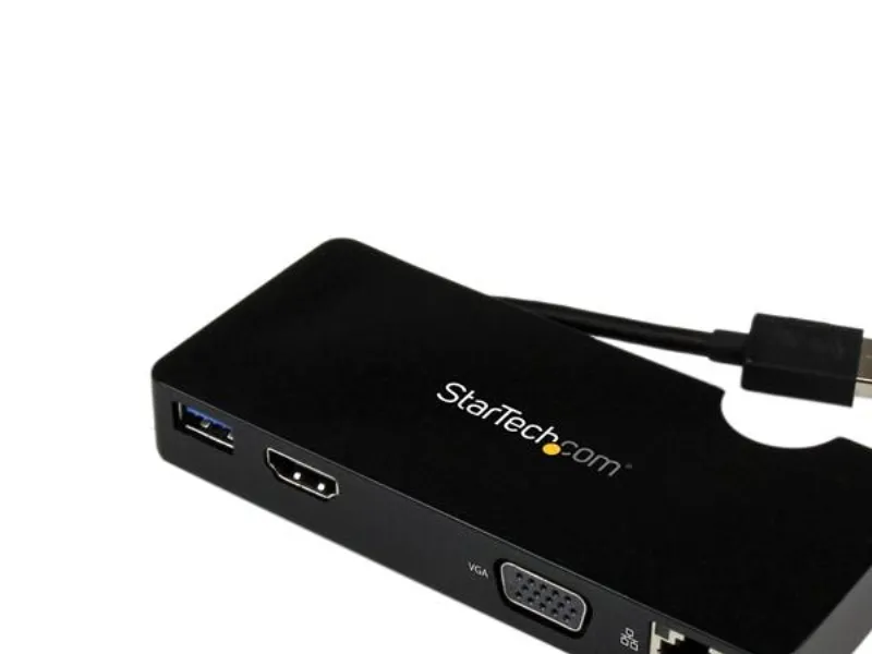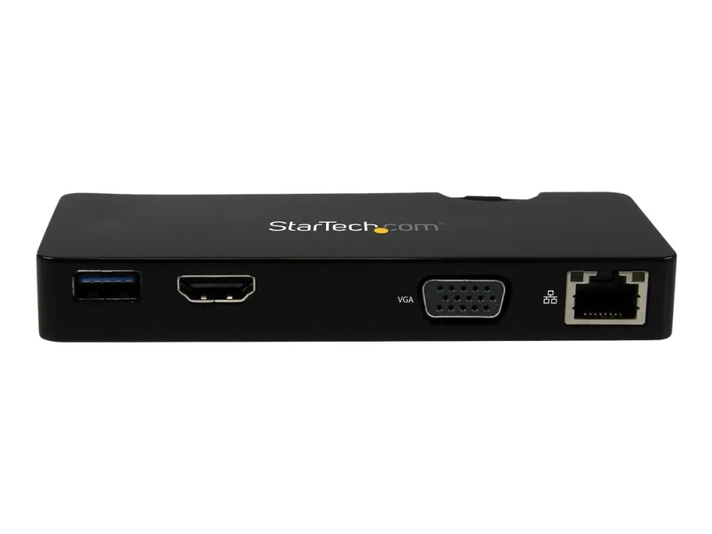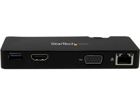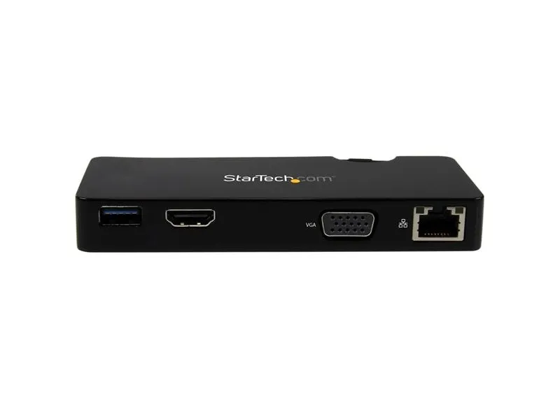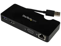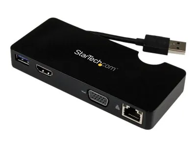 Create a mobile workstation using your Ultrabook or laptop USB 3.0 port via this portable USB 3.0 mini dock. The travel docking station for laptops lets you transform your laptop or Ultrabook into a mobile workstation. It adds HDMI or VGA video output, a USB 3.0 hub port, and a Gigabit Ethernet RJ45 port, through a single USB 3.0 host connection. The travel-friendly dock helps you overcome the port limitations of modern mobile computers, making it ideal for your laptop, Microsoft Surface Pro 4, SurfacePro 3, Surface 3, Surface Pro 2 or Surface Book.