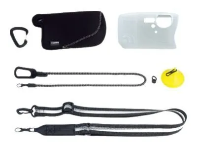 The carrying case and silicone coating protect against bumps and scratches, and a highly visible float makes it easy to find the camera in the water. Carry your PowerShot easily and securely with a carabiner strap and shoulder strap.