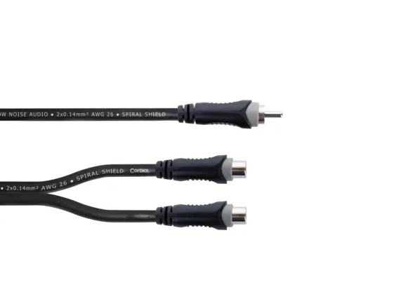 Y-adapter; connector 1: RCA black/2x plug 6,3 mono: 2 x RCA-jack Socket black
