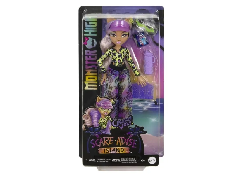 This Monster High doll rocks a beach-ready vacation lurk! Clawdeen Wolf is all set to have a clawsome time on her Scare-adise Island getaway with an animal-print swimsuit, coverup pants, and storytelling accessories. She makes a faboolous gift for kids 4 years old and up! For even more fearsome fun, check out the whole line of Monster High Scare-adise Island dolls. Each sold separately, subject to availability. Doll cannot stand alone.​​​