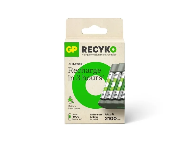 GP Batteries Economy E441. Suitable for: Universal, Power source type: USB, Compatible battery technologies: Nickel-Metal Hydride (NiMH). Product colour: Green. Battery recharge time: 3 h. Battery size: AA, Battery 2 size: AA, Battery technology: Nickel-Metal Hydride (NiMH). Quantity per pack: 1 pc(s)