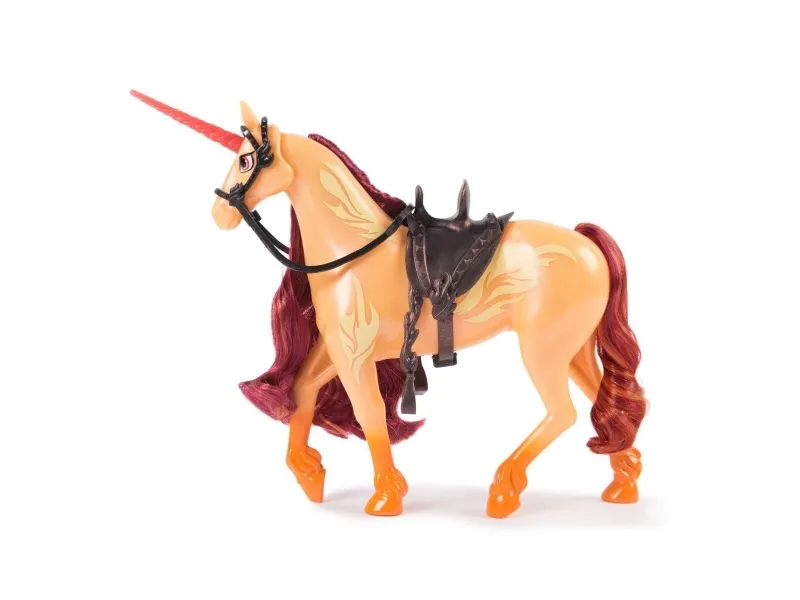Complete your Unicorn Academy doll collection with Valentina’s unicorn, Cinder. Inspired by the NETFLIX animated show and best-selling book series where friendship reins, this 11-inch unicorn toy brings fiery Cinder to life. Beautifully detailed, Cinder features a pearlized body, yellow Fire Magic markings on his side, a majestic glittery horn, colorful mane and tail, and removable bridle and saddle doll accessories for added play. Gently move Cinder’s head to bring out his personality and relive the magical bonding experience between unicorn and rider with Valentina. Brush Cinder’s soft mane and tail with Valentina’s styling tool (not included, sold separately with doll) and ride into adventure to protect Unicorn Island and its magic. For more ways to experience Unicorn Academy with your favorite characters, look for all of the rider dolls and their unicorns (each sold separately) and expand your world. The magical bonds between Unicorn Academy students and their unicorns will spark endless imaginative storytelling. For kids who enjoy unicorns and horse toys, dolls & accessories, doll house play, collectibles, plush toys and more, Unicorn Academy toys are fun birthday gifts for girls or gifts for any occasion. Bring home the magic of Unicorn Academy with Cinder.
