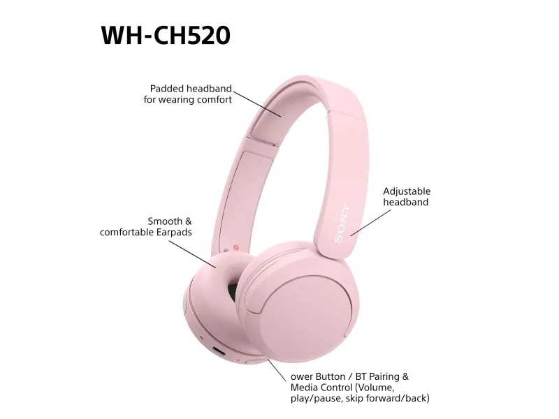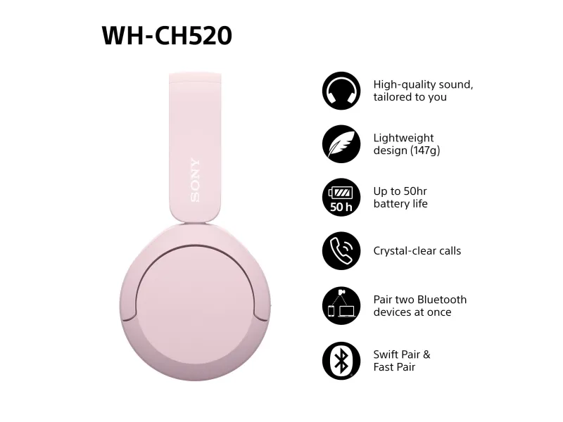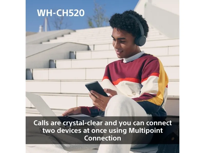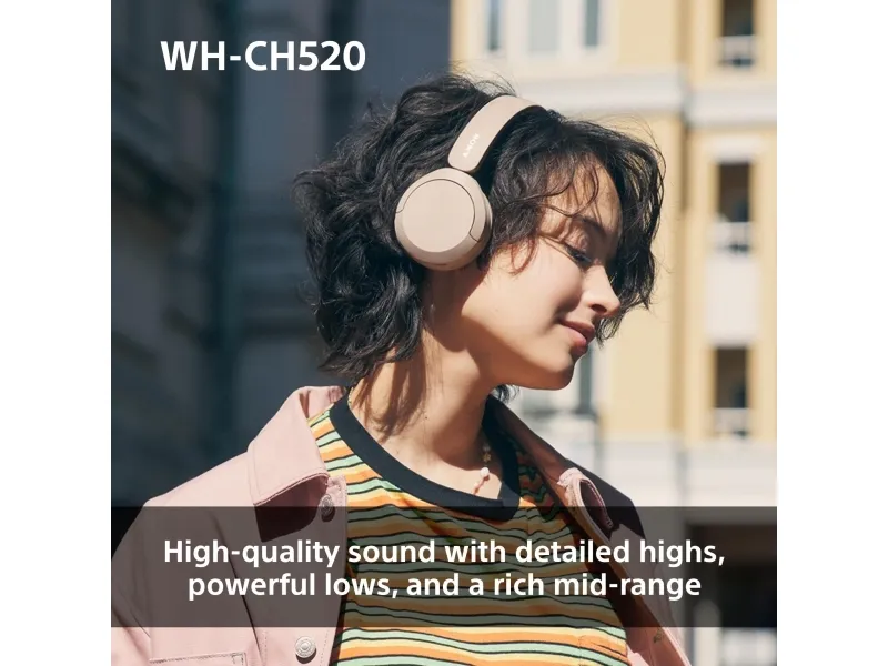 Nauti erinomaisesta äännelaadusta koko päivän. WH-CH520-kuulokkeissa on jopa 50 tunnin akunkesto, vakaat yhteydet ja parannettu puhelusuorituskyky päivittäistä käyttöä varten.