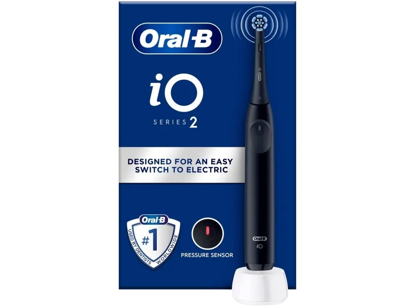Oral-B iO 2, Aikuisten, Pyörivä hammasharja, Päivittäishoito, Herkkä, Erittäin herkkä, Musta, 2 min, Akku